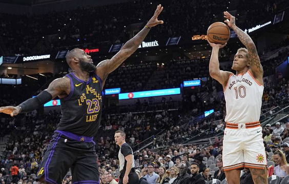 籃球直播吧12月16日訊 NBA常規賽,主場作戰的圣安東尼奧馬刺以129-115擊敗洛杉磯湖人。文班亞馬13分15籃板5助攻,詹姆斯23分7籃板14助攻。