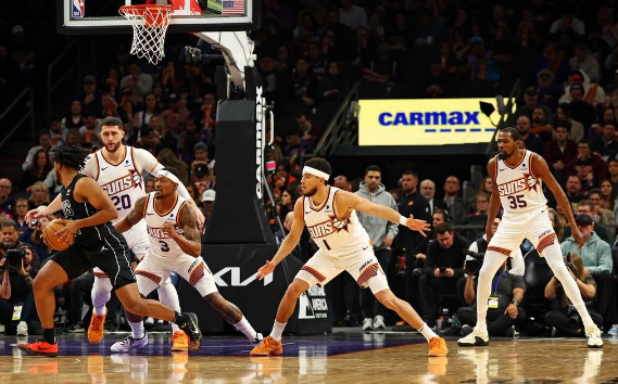 太陽隊首發(fā):德文-布克、凱文-杜蘭特、尤素福-努爾基奇、布拉德利-比爾、奇梅齊耶-梅圖